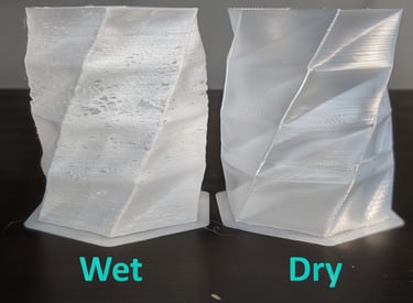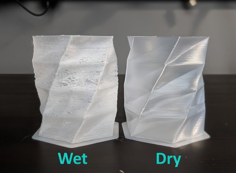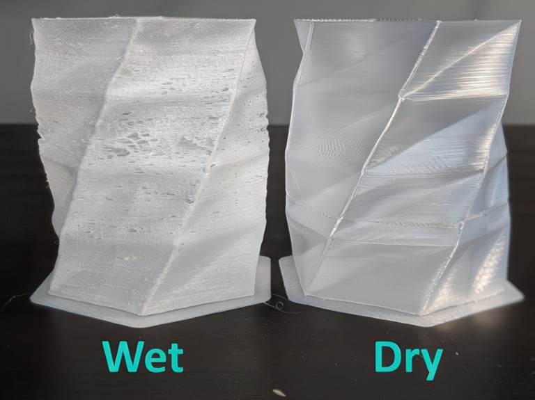 Poor Print Quality: Moisture creates bubbles in the molten filament, leading to weak prints, stringing, and a rough surface finish.