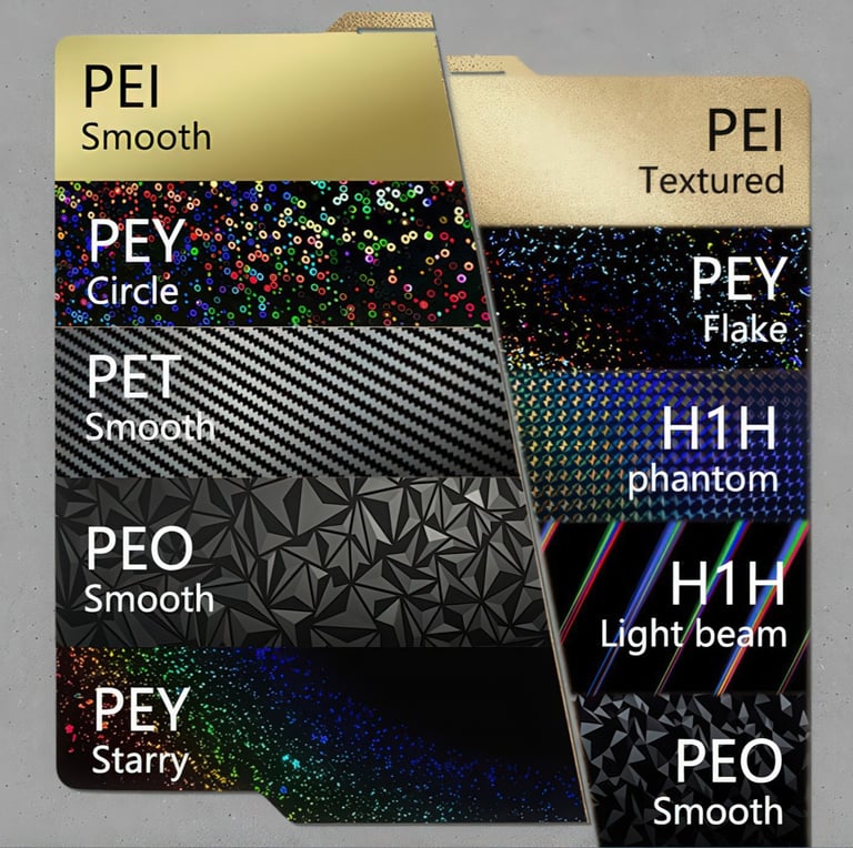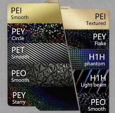 Diffraction Grating Sheets: These thin, flexible sheets are imprinted with microscopic grooves that diffract light, creating a rainbow-like effect. By applying a diffraction grating sheet to your build plate, you can transfer this mesmerizing pattern onto the bottom surface of your prints.